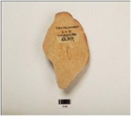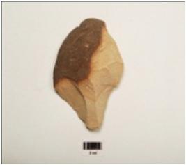 | Description / विवरण | A bifacial chopping tool made on quartzite pebble with cortex on surface, tapering sides and rounded tip along anterior end, plano convex in section. |