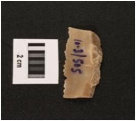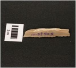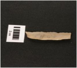 | Description / विवरण | A chert parallel sided blade with a mid ridge, triangular section, cortex on one surface, used wear mark on cutting edges. |
