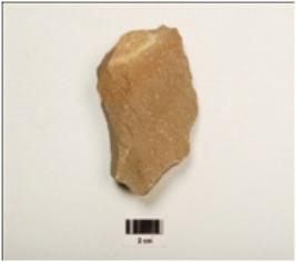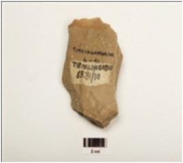 | Description / विवरण | A end scraper made on quartzite end struck flake with prepared platform, diffused bulb on ventral, cortex visible on distal end and irregular retouches on working edge, trapezoid in section. |