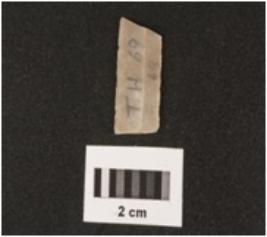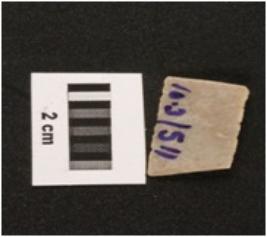 | Description / विवरण | A chert parallel sided blade with a mid ridge, triangular section, used wear mark on cutting edges. |