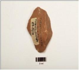 | Description / विवरण | A end scraper made on quartzite side struck flake with prepared platform, bulb on ventral, flake scars on dorsal and irregular retouches on working edge, trapezoid in section. |