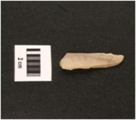| Description / विवरण | Chert blade with use-wear marks on cutting edges, smooth surface with a ridge on dorsal side, triangular in section. |
