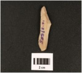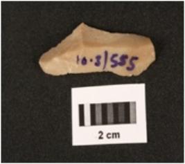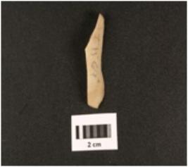 | Description / विवरण | Chert blade with use-wear marks on cutting edges, smooth surface with a mid-ridges triangular in section. |