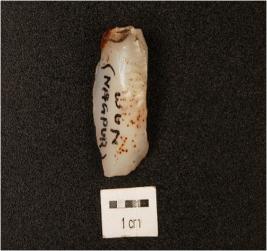 | Description / विवरण | A chalcedony core with flake scars on surface. |