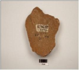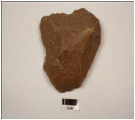 | Description / विवरण | Side-scraper made on side-stuck quartzite flake, positive bulb on ventral surface, use wear marks along cutting edges, flake scars on dorsal surface with cortex, striking platform, triangular in section. |