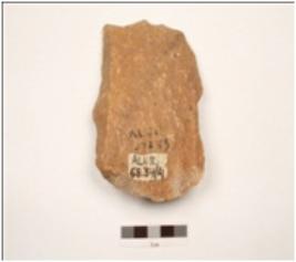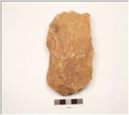 | Description / विवरण | Scraper made on side-struck quartzite flake cutting edges, prepared platform, diffused bulb on ventral surface, flake scars on dorsal surface. |