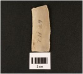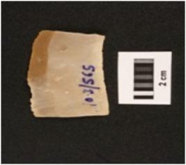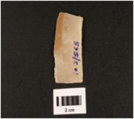 | Description / विवरण | Chert blade with use-wear marks along the cutting edges, two prominent ridge on dorsal side, trapezoidal in section. |