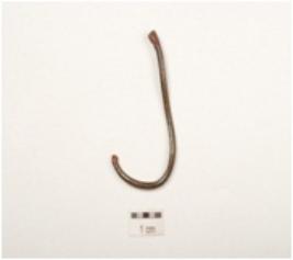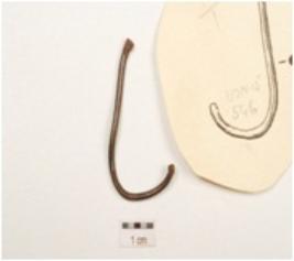 | Description / विवरण | A copper hook, smooth surface, curved at one end, broken from other end, chemically treated and circular in section. |