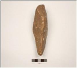 | Description / विवरण | Handaxe made on side-struck quartzite flake, wavy-cutting edges, flake scars on one surface, cortex on surface, straight butt end, pointed other end, triangular in section. |