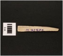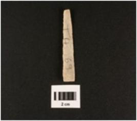 | Description / विवरण | Chert blade with use-wear marks on cutting edge, prominent mid-ridge on dorsal side, triangular in section. |