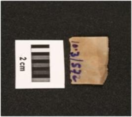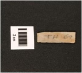 | Description / विवरण | Parallel sided chert blade with use-wear marks on cutting edges, two-ridges on dorsal side, trapezoidal in section, diffused bulb on ventral side. |