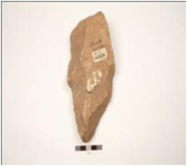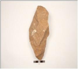 | Description / विवरण | Handaxe made on end-struck quartzite flake, flake scars on both surface, diamond in section, pointed at one end, wavy cutting edges. |