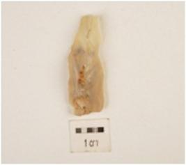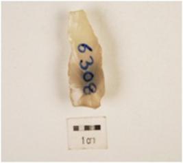 | Description / विवरण | A chalcedony blade with prepared platform, prominent bulb on ventral side, use-wear marks along the cutting edge and triangular in corss section. |