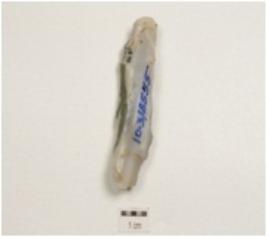 | Description / विवरण | Core on chalcedony with blade scars and cortex on surface. |