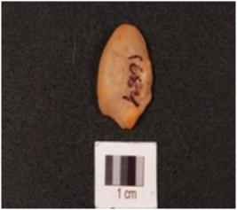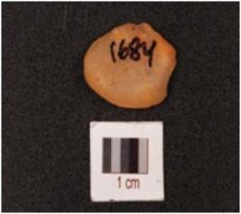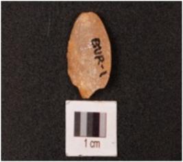 | Description / विवरण | A quartz stone scraper mid ridge on dorsal, ventral is smooth and use wear marks on edge. |