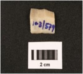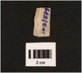 | Description / विवरण | Parallel sided chert blade with use wear marks on cutting edges, a mid-ridge on dorsal surface, triangular in section, diffused bulb on ventral side. |