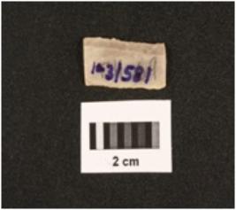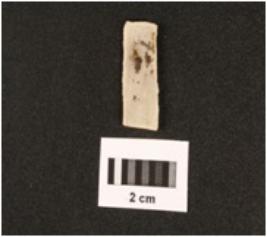 | Description / विवरण | Fragment of parallel sided chert blade with use wear marks on cutting edges, two ridges on dorsal side, trapezoidal in section, diffused bulb on proximal end. |