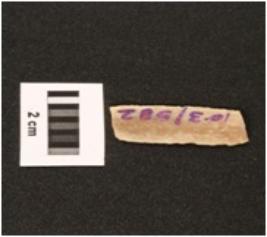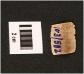 | Description / विवरण | Fragment of parallel sided chert blade with use wear marks on cutting edges, triangular in section mid-ridge on dorsal side, diffused bulb on proximal end. |