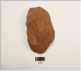 | Description / विवरण | A core on quartzite flake scars on both sides, biconvex in section. |