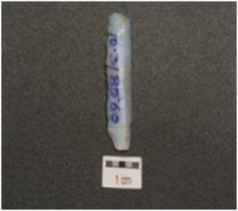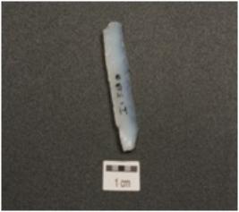 | Description / विवरण | Chalcedony blade with prepared platform, double ridge on dorsal and prominent bulb on ventral side, use wear marks along cutting edges and trapezoidal in section. |