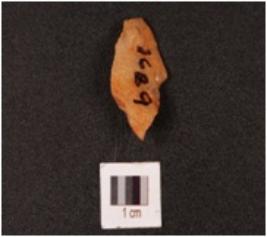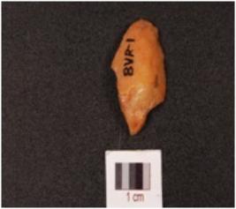 | Description / विवरण | A quartz stone scraper, mid ridge on dorsal ventral is smooth with diffused bulb, distal end is broken and use wear marks on edges. |
