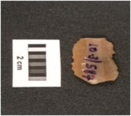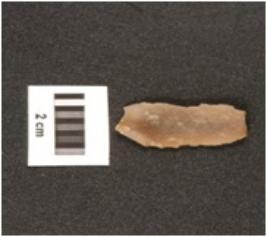 | Description / विवरण | Fragment of parallel sided chert blade with use wear marks on cutting edges, two-ridges on dorsal side, trapezoidal in section, prominent bulb on proximal end. |