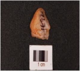 | Description / विवरण | A flake made on quartz, flake scars on surface, surface is smooth and uneven. |