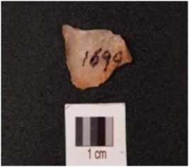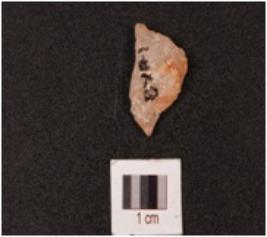 | Description / विवरण | A quartz flake with flake scars on the surface. |