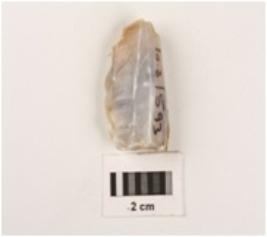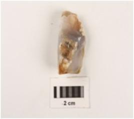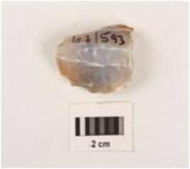| Description / विवरण | Fragment of chalcedony core with four blade scars, prepared platform, cortex visible. |