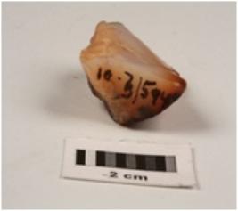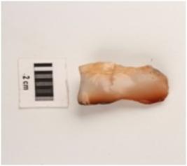 | Description / विवरण | Fragment of chalcedony blade, triangular in section, ridges and ripple marks on dorsal side, cortex on dorsal side, prominent bulb on proximal end. |