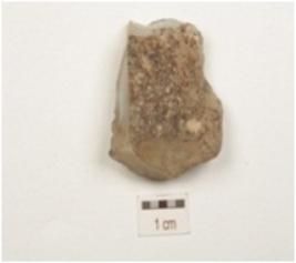 | Description / विवरण | A chalcedony core, irregular blade scars on surface and intact cortex on one side. |