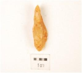 | Description / विवरण | A quartz flake made on endstruck with prepared platform and diffused bulb on ventral side. |