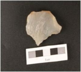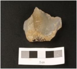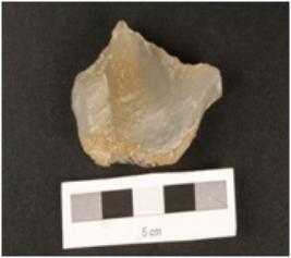 | Description / विवरण | A side scraper made on end struck, irregular retouch on left side, cortex on dorsal side. |