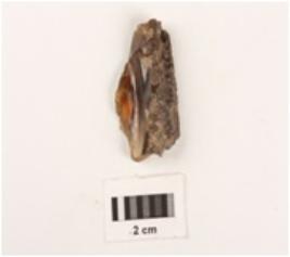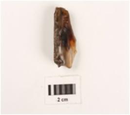 | Description / विवरण | Fragment of chalcedony blade, diffused bulb on ventral side, a mid ridge on dorsal side with ripple marks, triangular in section, cortex on dorsal side, use-wear marks on cutting edges. |