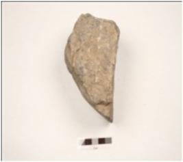 | Description / विवरण | A bifacial chopping tool made on granite, blunt cutting edge on the anterior, thick round butt end on posterior, trapezodial in section. |