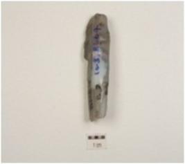 | Description / विवरण | A chalcedony fluted core, long fluted blade scars, prepared platform and intact cortex at one side. |