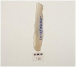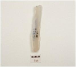 | Description / विवरण | A single ridged blade made on a chalcedony, visible used wear marks, ripple marks on ventral side, diffused bulb at ventral side and triangular cross section. |