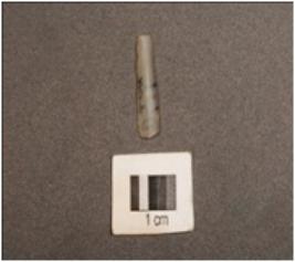 | Description / विवरण | Pen knife shaped chalcedony blade, mid-ridge on dorsal, defused bulb, use wear edges, proximal end. |