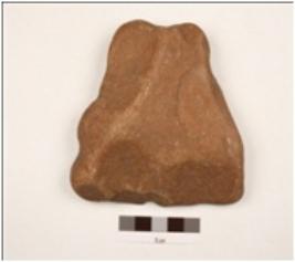 | Description / विवरण | Scraper made on end-struck quartzite flake, prominent bulb on ventral surface, cutting edges, flake scars on dorsal surface. |