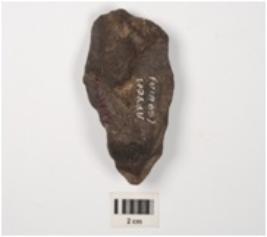 | Description / विवरण | A side scraper prepared with end struck flake with flake scars on dorsal and ventral blunt edge and cortex on distal end. |