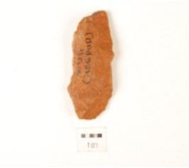 | Description / विवरण | A quartzite flake made on endstruck, prepared platform and prominent bulb on ventral side. |