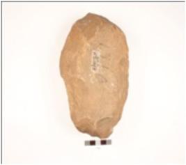 | Description / विवरण | Handaxe made on quartizte pebble, flake scars on both surface, cortex visible, wavy cutting edges, broad pointed at one end, broad butt end, biconvex in section. |