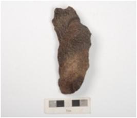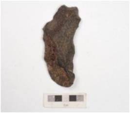 | Description / विवरण | A side scraper on end struck flake, made on basalt with flake scars on dorsal side, bulb on ventral side and irregular retouches on both sides. |