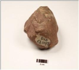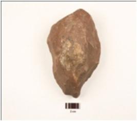 | Description / विवरण | Core made on quartzite pebble, flake scars on both surface, cortex visible. |