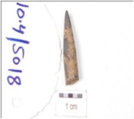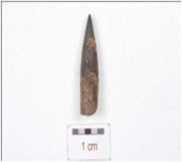 | Description / विवरण | A fragment of bone point, pointed on one end and broken on other end and circular cross section. |