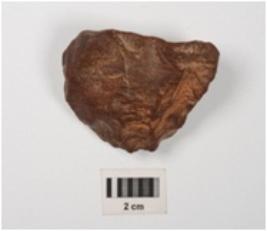 | Description / विवरण | A side scraper, made on basalt with flake scars and ripple marks and irregular retouches on one edge. |