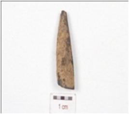 | Description / विवरण | A fragment of bone point, broken upper part and slightly missing working edge and rectangular cross section. |