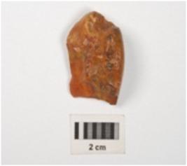 | Description / विवरण | A side scraper, made on chert with flake scars and visible cortex on dorsal side and irregular on working edge. |