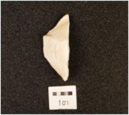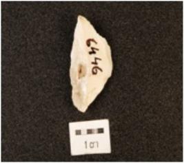 | Description / विवरण | Core made on chert, flake scars on surface, triangular cross section, striking platform on top visible. |