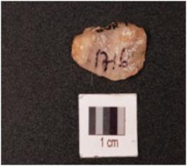| Description / विवरण | A quartz stone scraper mid ridge on dorsal ventral is smooth with diffused bulb and use wear marks on edge. |